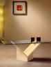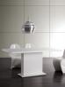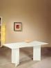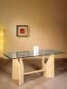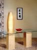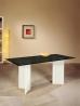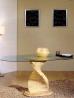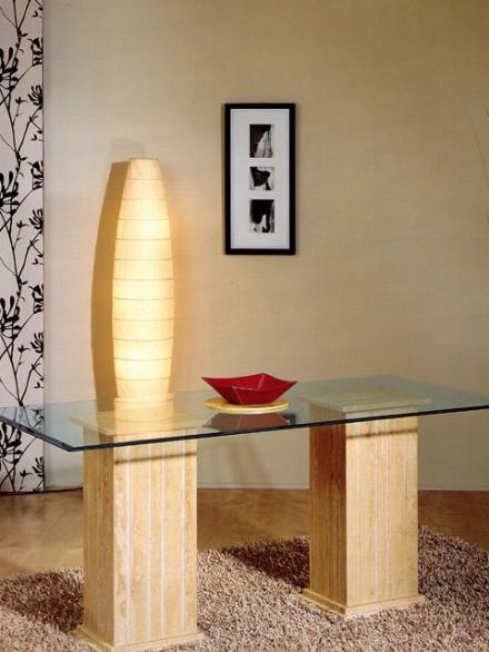 Modelo 538, mesa de comedor de mármol travertino con tapa de cristal rectangular.